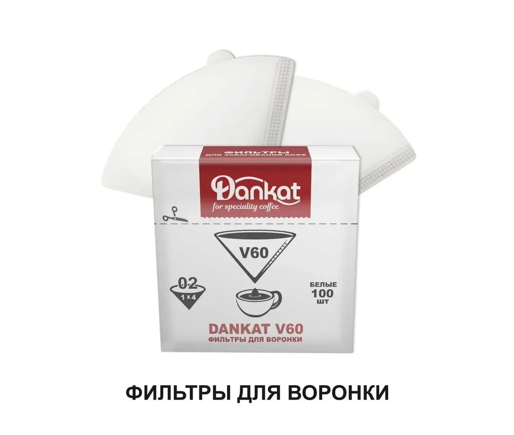 Комплектация: в одной упаковке 100 шт. фильтров. Бумажные фильтры DANKAT V60 используют для приготовления кофе в воронке методом пуровер. Также можно использовать наши фильтры в иммерсионных воронках и капельных кофеварках. Фильтры совместимы с воронками HARIO. Фильтры не пропускают масла и нерастворимые твердые частицы кофе, а в некоторых воронках способствует насыщению кофе кислородом — аэрации. В результате получается вкусный напиток без кофейной гущи. Пористая структура фильтров хорошо пропускает вкусоароматические вещества, но задерживает кофейную пыль, поэтому кофе обладает легким телом и чистым вкусом. Фильтры изготовлены из высококачественной фильтровальной бумаги. В упаковке 100 шт. Размер фильтров 02 (1-4 чашки). Упаковка с перфорацией позволяет удобно хранить фильтры и легко их доставать.